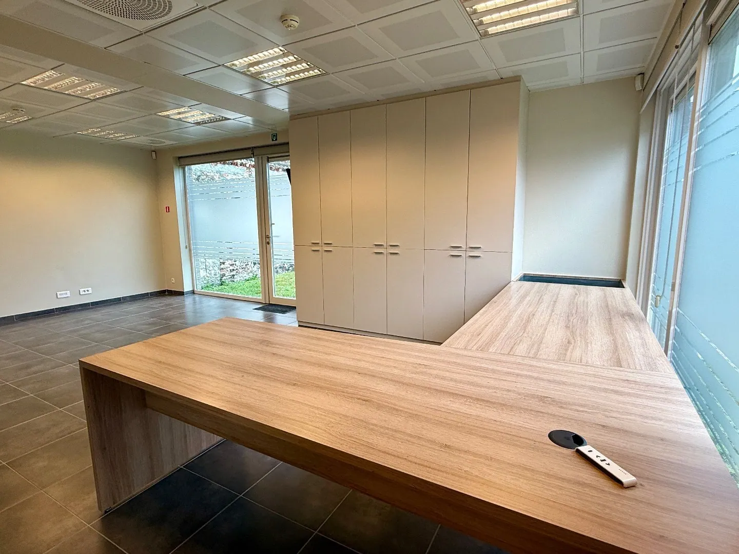 Het kantoorpand zelf is ruim opgezet en beschikt over verschillende kantoorruimtes, vergaderzaal, keuken met eetgelegenheid, toiletten en een moderne ontvangstruimte. De grote ramen zorgen voor veel natuurlijk lichtinval en een prettige werkomgeving. Daarnaast is het pand voorzien van moderne faciliteiten zoals airconditioning en een goed beveiligingssysteem.