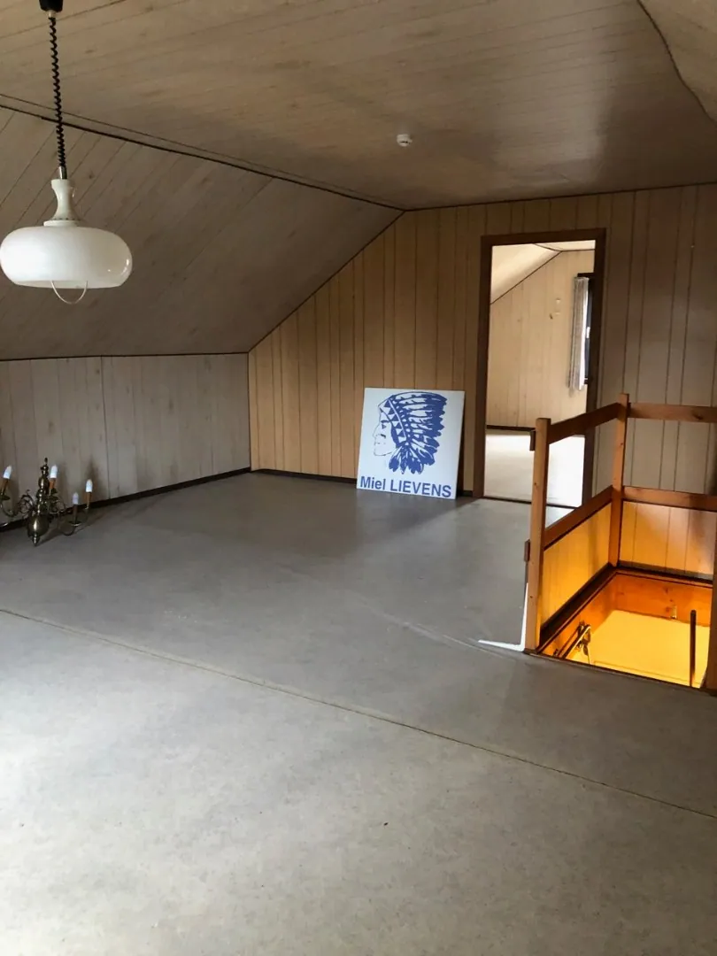 De woning is volledig overzolderd. Ideaal voor de hobbyist of voor wie veel bergruimte nodig heeft. Een extra berging vindt u eveneens op het gelijkvloers, aansluitend aan de aangebouwde garage en veranda.