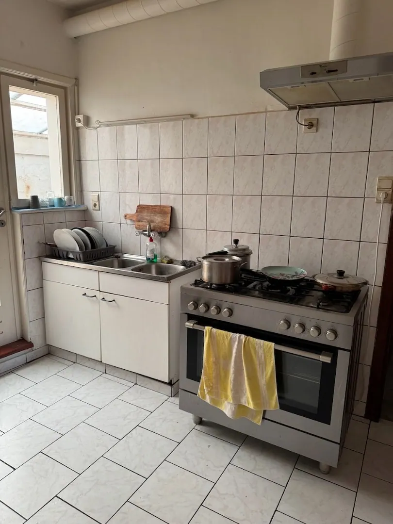 Dit appartement, jaren zestig stijl, is ideaal gelegen en geschikt voor de jonge starter. Het appartement is als volgt ingedeeld: gelijkvloers: ruime inkomhal, multifunctionele ruimte die dienst kan doen als garage ( achter het rolluik op de foto van de voorgevel) en een extra ruimte die momenteel niet in gebruik is. Op het eerste verdiep: een living, basiskeuken, badkamer (toilet, lavabo, zitbad) en een veranda. Op het tweede verdiep: drie slaapkamers. Graag meer info of een bezoek? Wij zien uw e-mail op info@thehousefriend.be graag tegemoet.