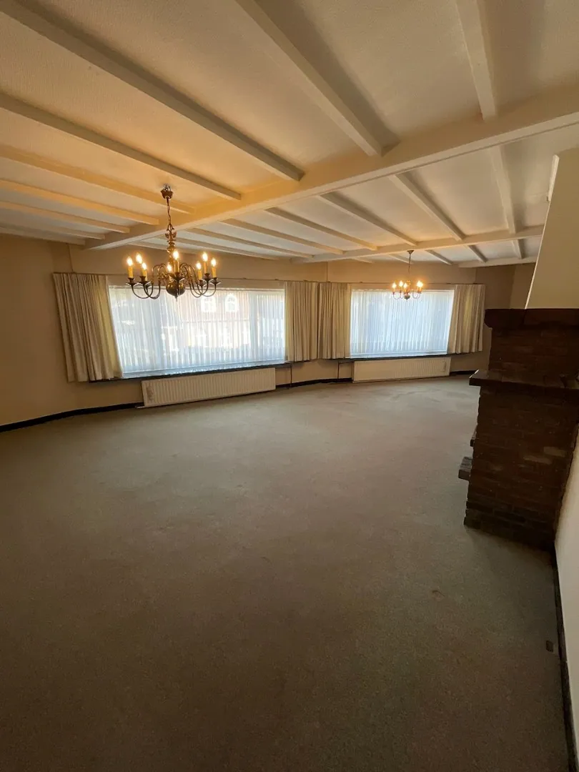 Het is als volgt ingedeeld: gelijkvloers: garage. Verdiep 1: ruime living, keuken met basis toestellen, vintage badkamer, veranda en 5 slaapkamers.