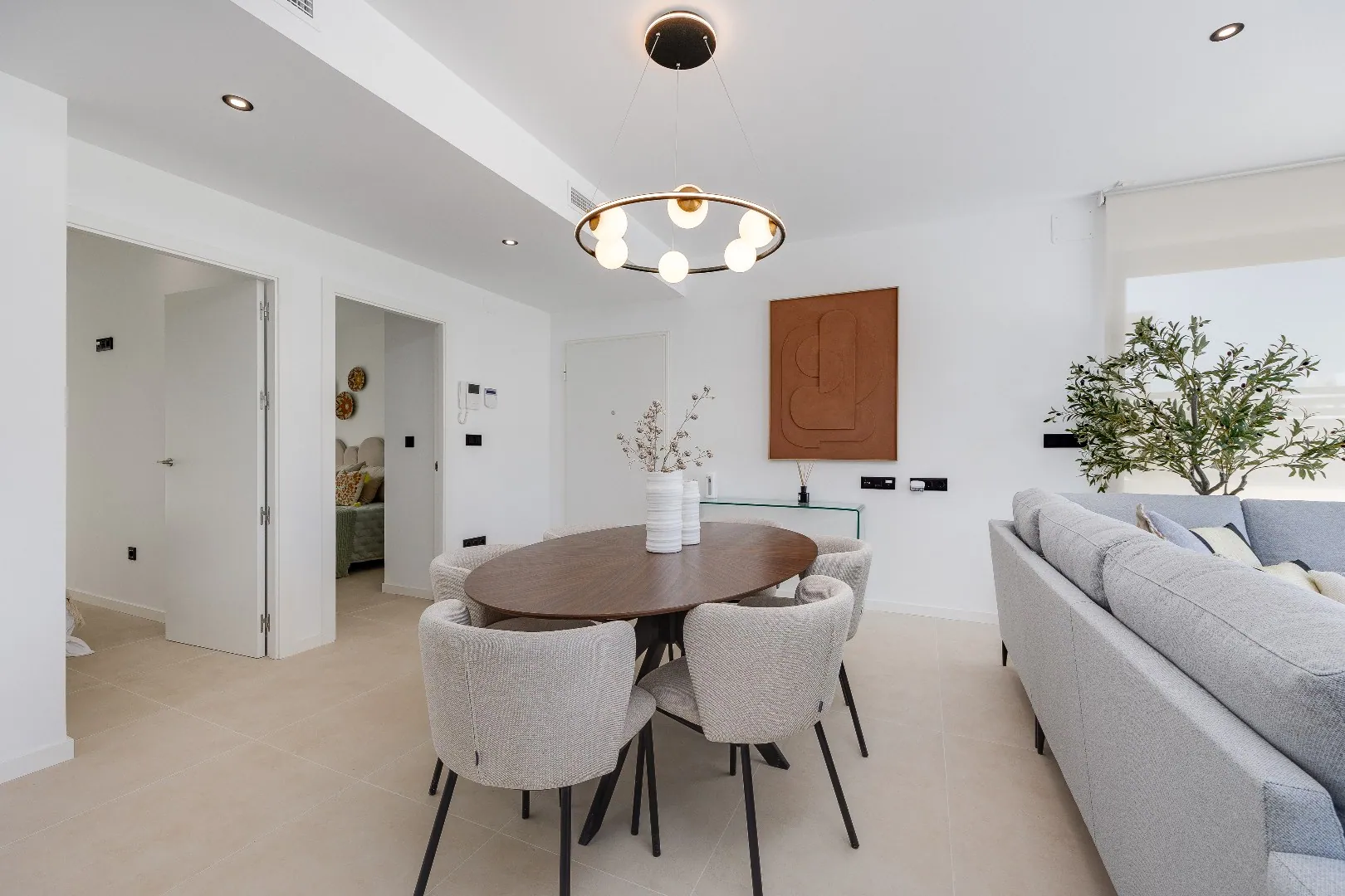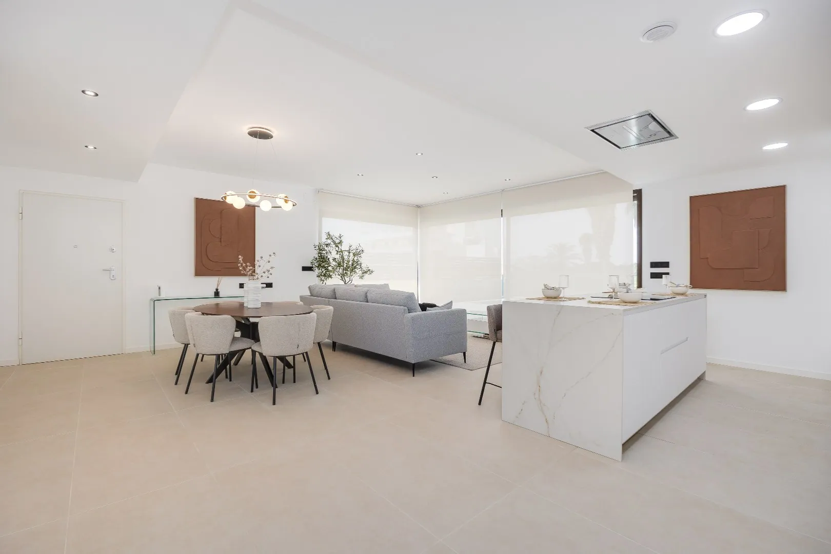Dankzij de grote schuiframen geniet u van een naadloze overgang tussen binnen en buiten – ideaal voor het Spaanse leven met zon, zee en ontspanning. Het terras met privézwembad biedt het perfecte decor voor lange zomerdagen.