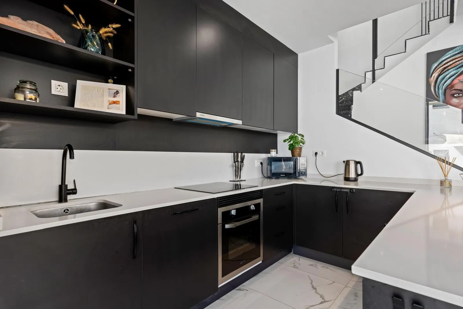 De open keuken is zeer praktisch en comfortabel. Het bevat een groot eiland dat de hele ruimte verenigt en je helpt een zeer ruime, grote kamer te creëren, waarin je verschillende omgevingen kunt creëren: een formele eetkamer om je gasten te ontvangen, een heel huiselijke woonkamer met wat bohemien details, een kleine hoekje met wat spelletjes voor de kinderen….