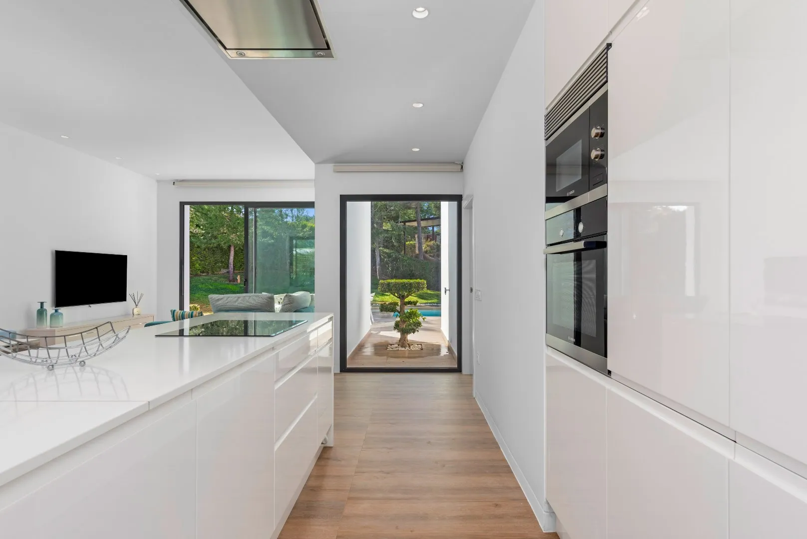 Open lay-out met moderne keuken, lounge-eetkamer en goed ingerichte slaapkamers met inbouwkasten. Mooie inrichting en meubilair evenals keuken met hoogwaardig apparatuur.