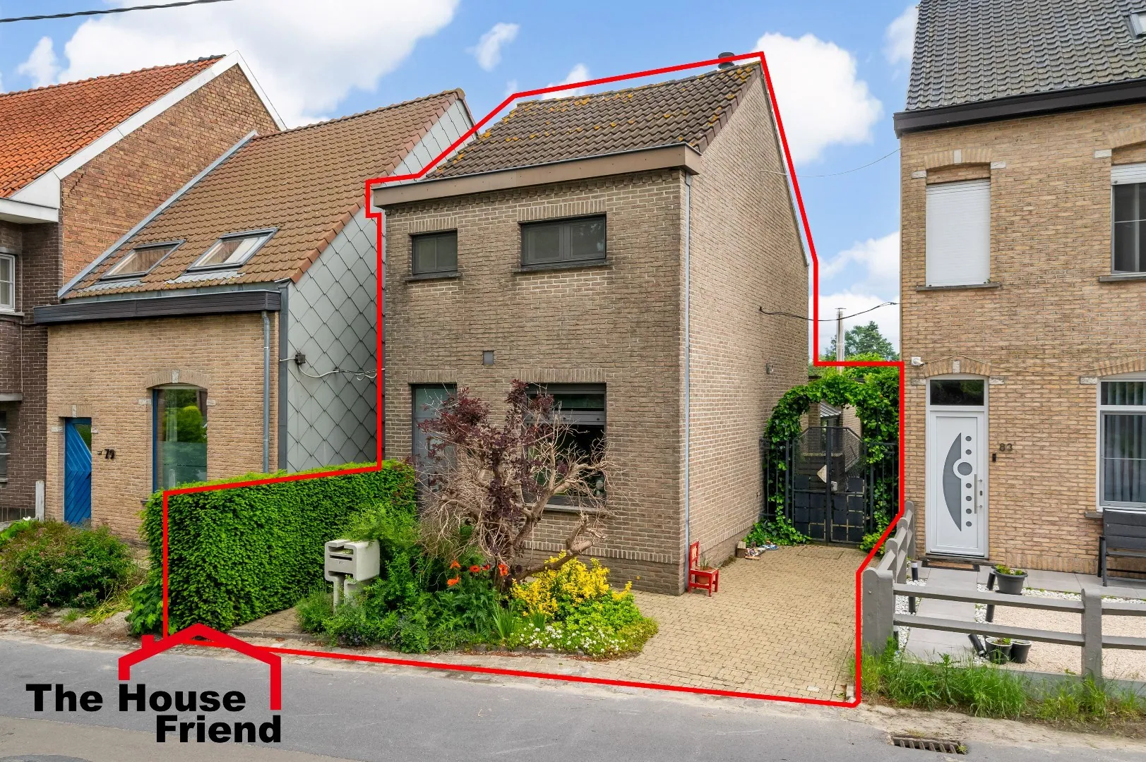 Naast de woning kan je via een zij ingang naar de tuin. Parkeren met de auto kan je op de oprit.